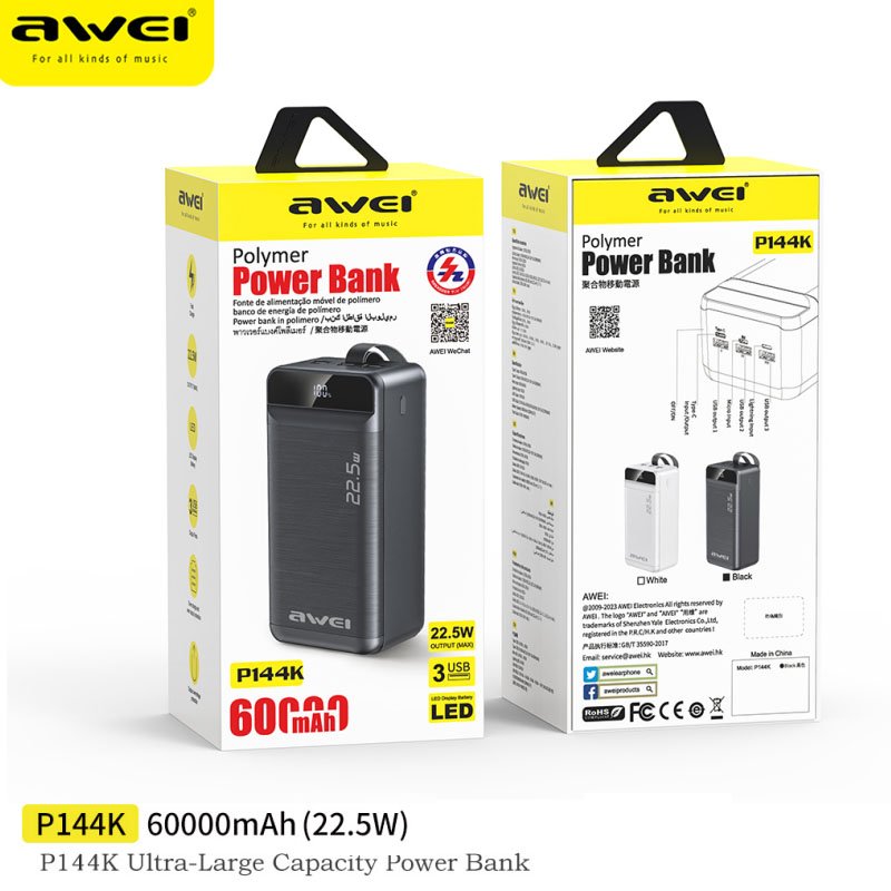 Awei P144K 22.5W 60000mAh Power bank Price in Kenya – Large Capacity Camping Power Bank Digital Display Fast Charge Power bank Super Fast Charger