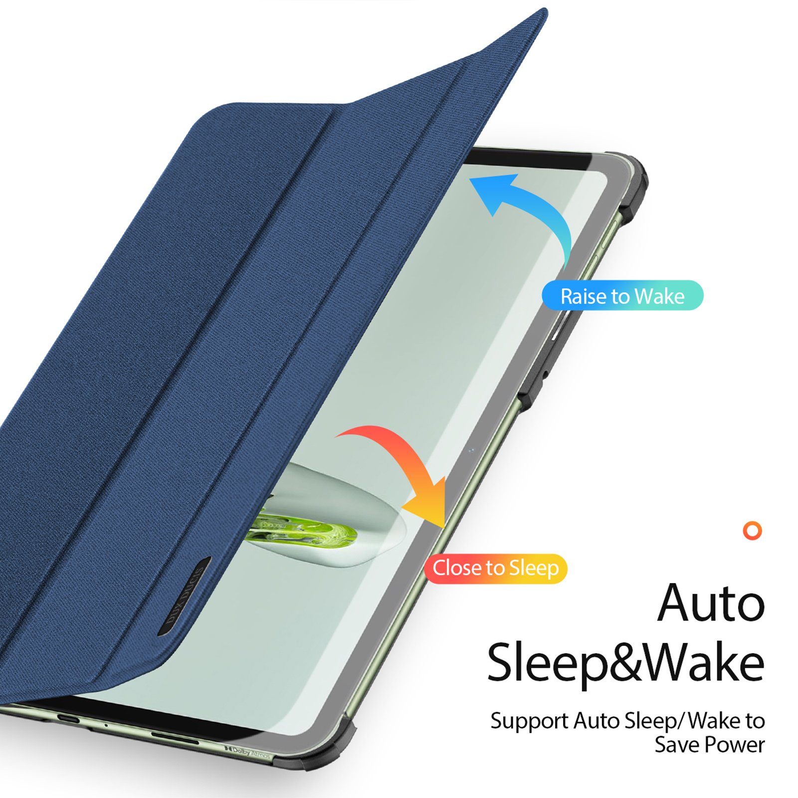 The smart feature automatically wakes up your device when you open the case and puts it into sleep mode when you close it .