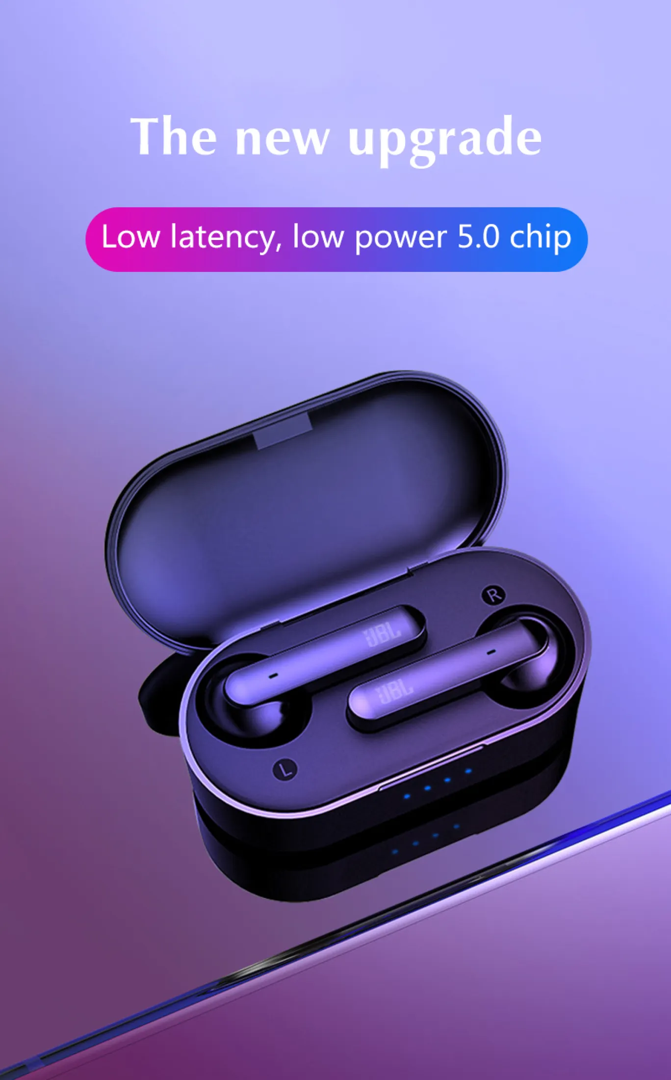 When a earbud is at a low power level, it will be prompted by voice and accompanied by recight flashing slowly. When it is put into the charging bin, It will automatically identifyer.when charging, the red light will always be on, and When it is fully charged, the reclight will turn to blue light and then turn off.