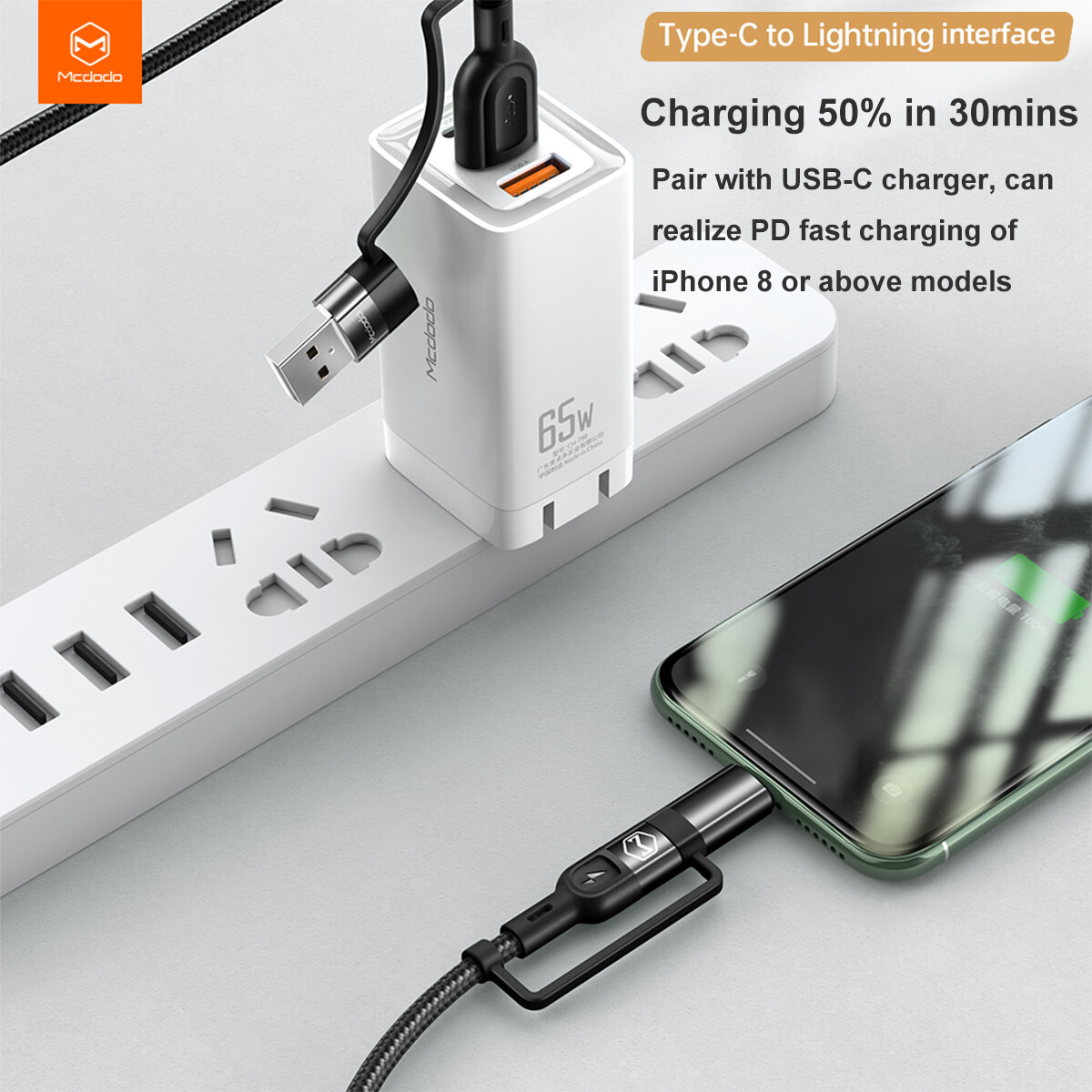 1 X Mcdodo 60W PD Fast Charging Type-C Lightning USB Cable Charger